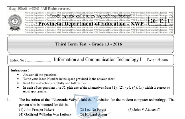 O L Ict Past Papers 2018 English Medium