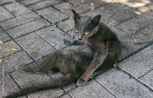 Alien Cat With Yellow Eyes Sitting All Alone On A Yellow Letter Box Stock Photo Alamy
