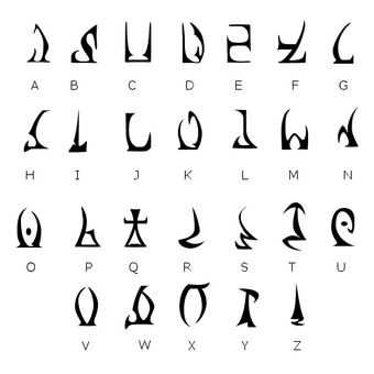 The Alien Alphabet From Futurama Alphabet Symbols Alien Symbols Alphabet Code