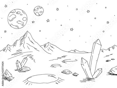 Alien Planet Graphic Black White Space Landscape Sketch Illustration Royalty Free Cliparts Vectors And Stock Illustration Image 107787316