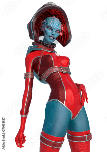 Alien Queen In A Red Sci Fi Outfit Doing A Sweet Smile In A White Background Stock Illustration Illustration Of Galaxy Fantasy 149088139