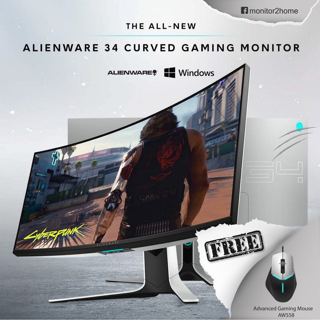 Alienware Aw3420dw Curved 34 Inch Wqhd 3440 X 1440 120hz Nvidia G Sync Ips Free Mouse Alienware Aw558 Shopee Thailand