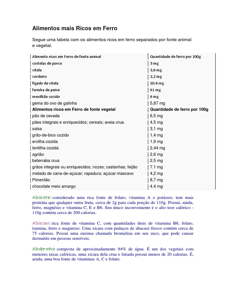 Quais Os Alimentos Ricos Em Ferro 12 Opcoes A Incluir Na Alimentacao