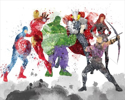 Avengers Assemble Group A3 Digital Watercolour Splash Effect Poster Print Ebay