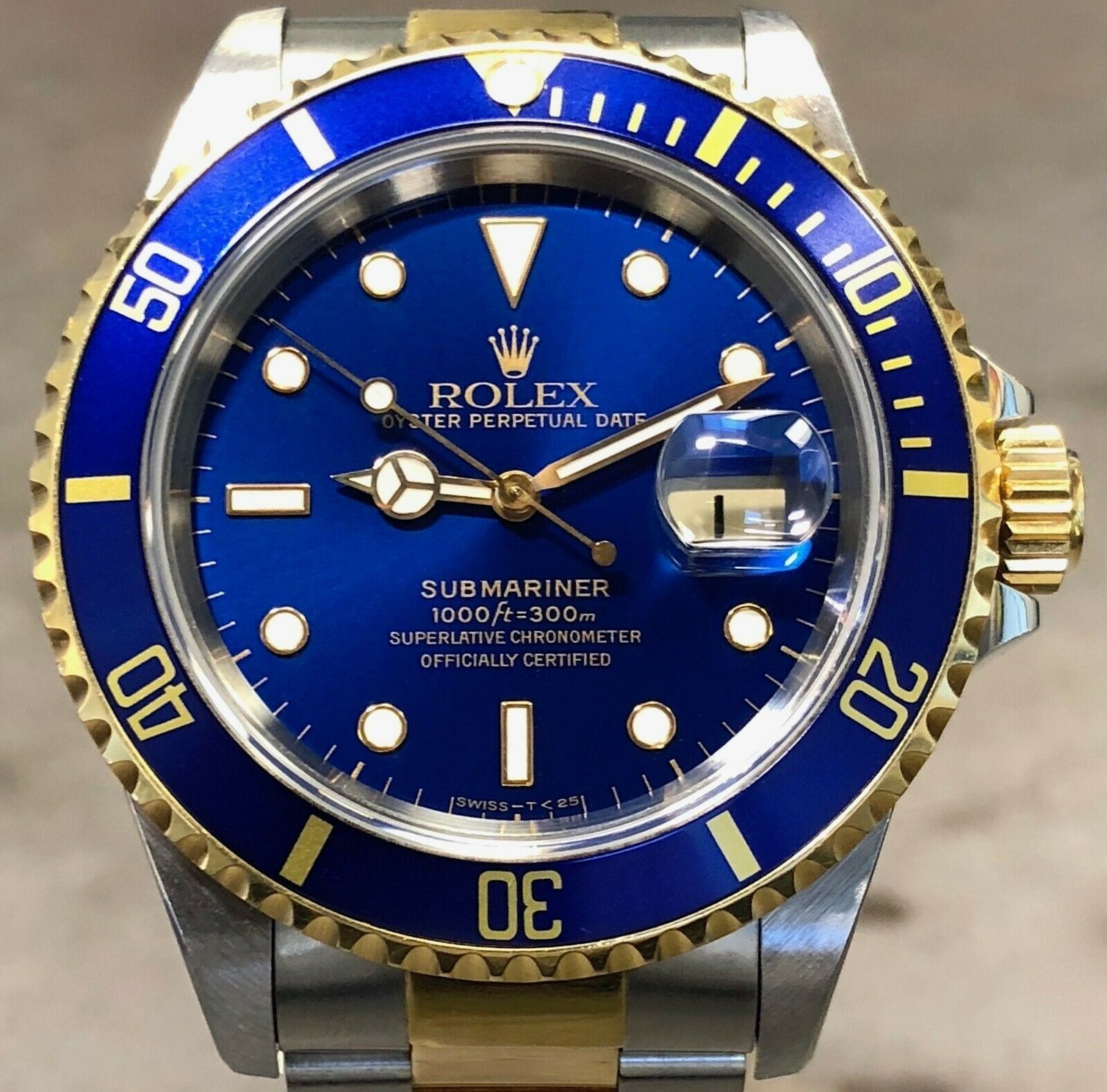 Amazon Com Rolex Submariner Blue Dial 18kt Yellow Gold Oyster Bracelet Mens Watch 116618blso Watches
