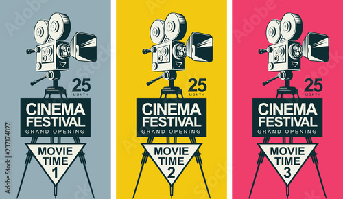 Wall Murals Vector Blue Background With Lighting Old Fashioned Movie Camera On The Tripod Can Used For Banner Poster Web Page Background