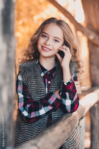 Stylish Smiling Teen Girl 12 14 Year Old Posing Outdoors Wearing Casual Clothes Looking At Camera Teenager Hood Stock Photo Alamy