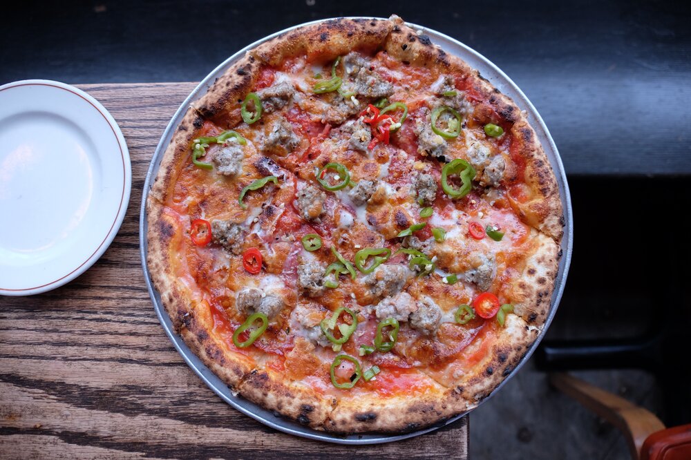 True to motor city tradition some our detroit style pizzas are baked in blue steel pans imported from detroit.