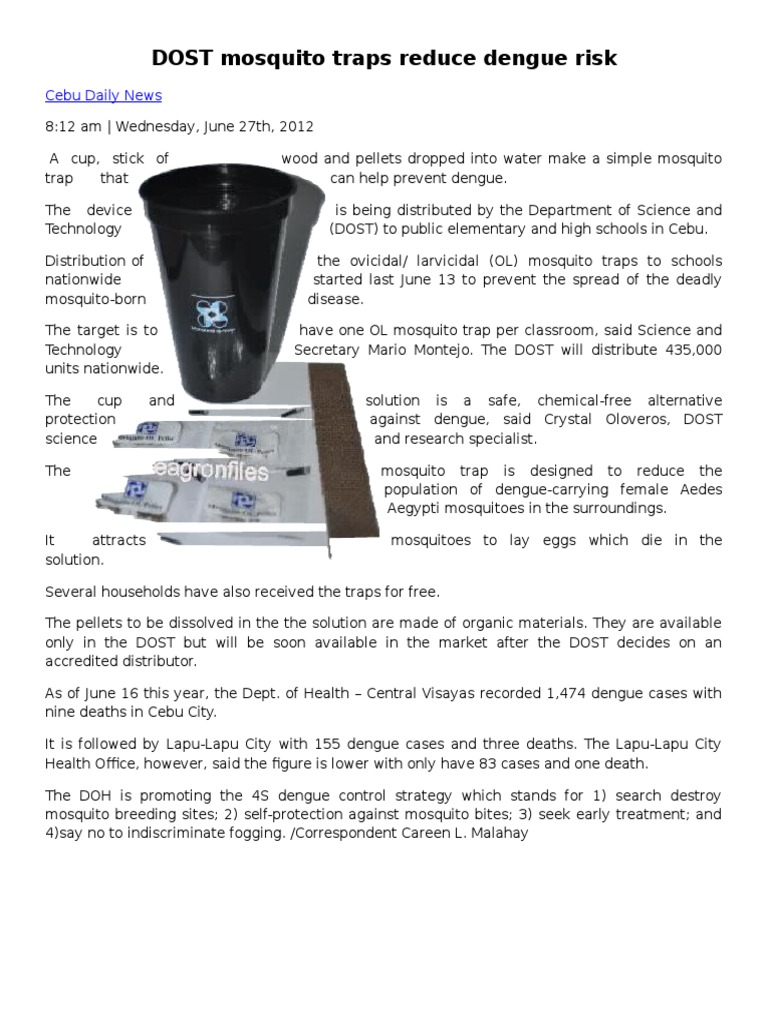 Dost Doh Namahagi Ng Mosquito Ol Trap Sa E Visayas Inilunsad