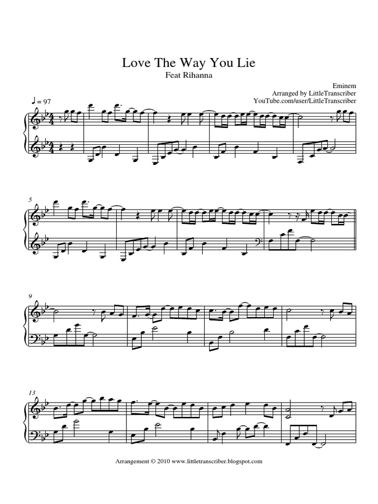 Love The Way You Lie Part 2 Rihanna Feat Eminem Piano Plateau