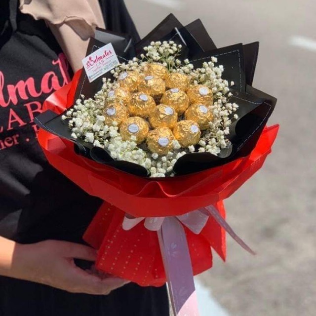 Ferrero chocolate bouquet. A chocolate flower bouquet looks very impressive as home decoration but is just perfect as original gift for every occasion mothers day valentines day or just a special friend. For ferraro rocher bouquet only without fresh flowers kindly allow at least 3 working days notice where gift will be delivered via courier. A chocolate bouquet is the perfect birthday gift idea gift for him gift for her anniversary gift get well gift to say you care gift the list is endless you cant go wrong with a chocolate bouquet. Make offer ferrero rocher chocolate bouquet.