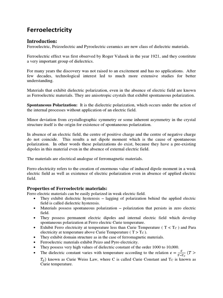 Section 4 5 Piezo Electricity And Ferro Electricity