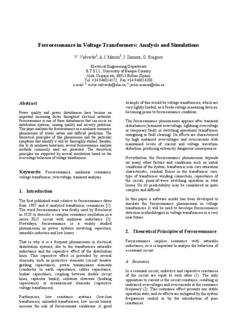 Pdf Resonant Overvoltages During Transformer Pdf Analysis Simulation And Testing Of Transformer