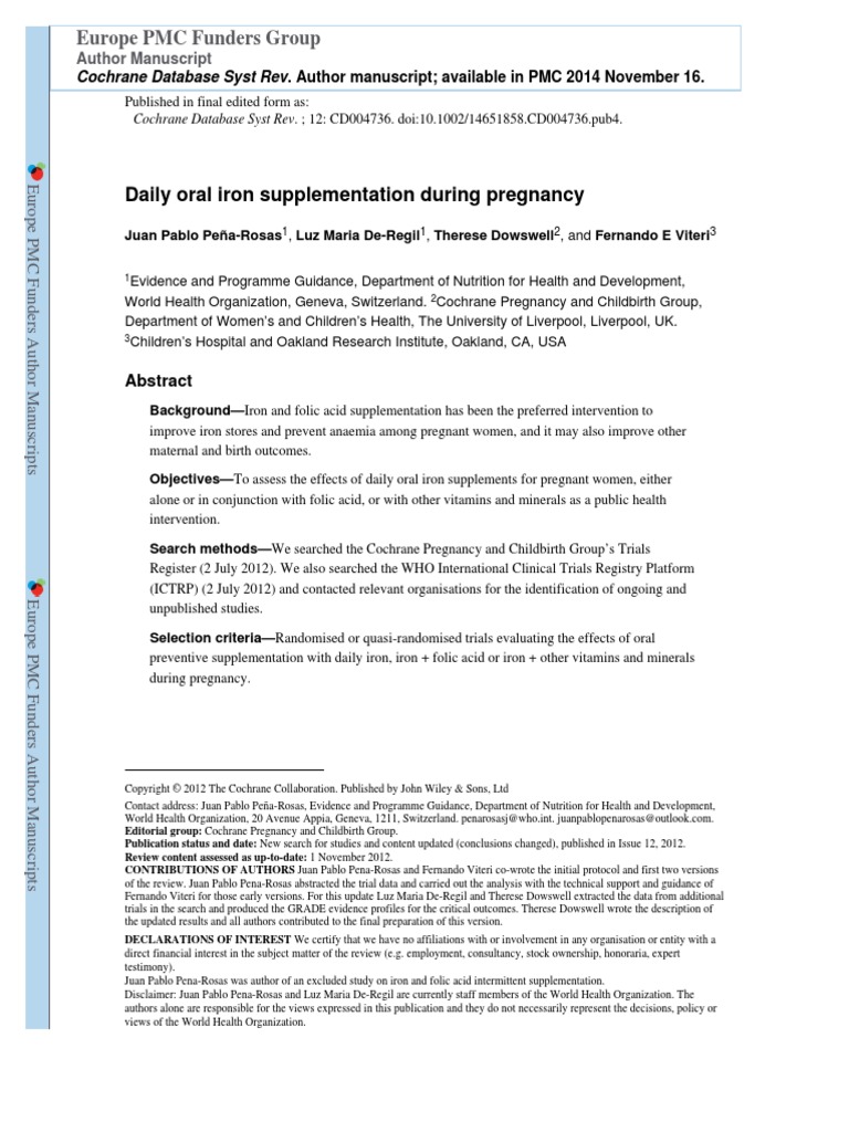 Intermittent Oral Iron Supplementation During Pregnancy Abstract Europe Pmc