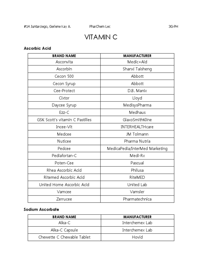 Rhea Ascorbic Acid Product Information The Filipino Doctor