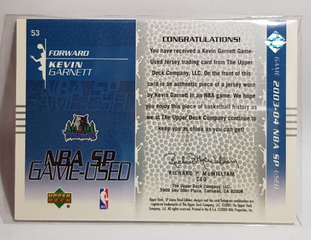 03 04 Sp Game Used Edition Kevin Garnett Jersey Nba Card Ryj Shopee Philippines
