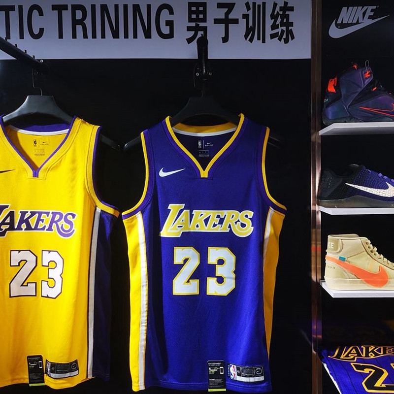 The side stripes were removed from the gold icon and white association uniform the shorts retain this feature while black side stripes with gold and white trim flank the purple statement uniform. Lonzo ball of the los angeles lakers wears his nike jersey with the sponsors wish logo during media day in el segundo california on september 25 2017. 3 points 1 year ago. Nba teams havent updated their uniforms much in recent.