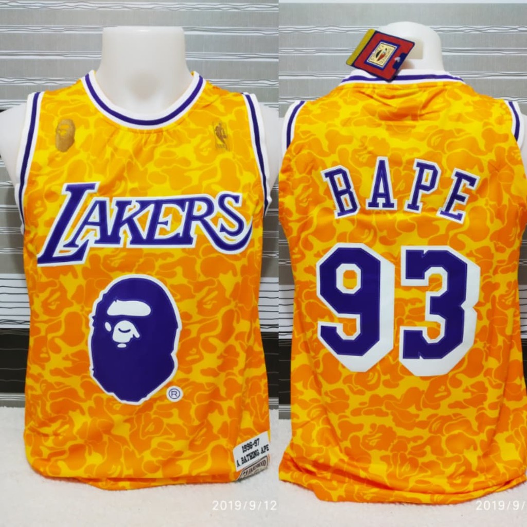 Bape X Mitchell Ness Lakers Abc Basketball Authentic Jersey Yellow Fw18