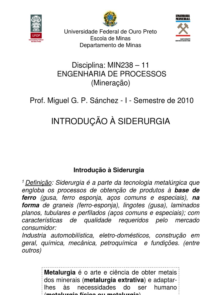 Apuntes Da Aula De Introducao A Siderurgia Breve Introdu O Siderurgia Para Eng Docsity