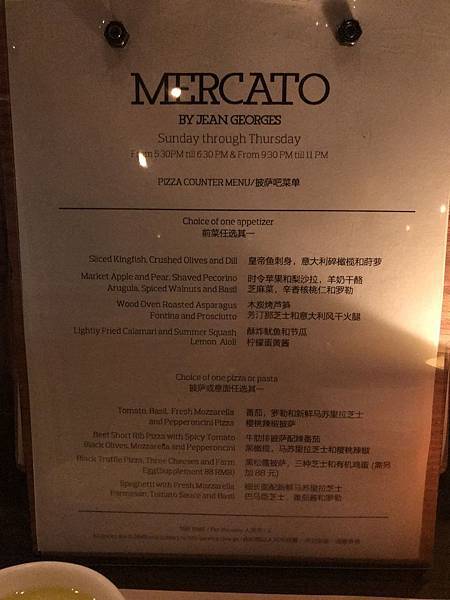 Mercato意大利餐厅菜单menu