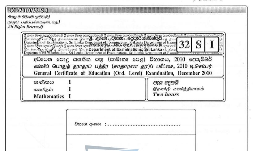 Gce O L Mathematics Paper 1 2019