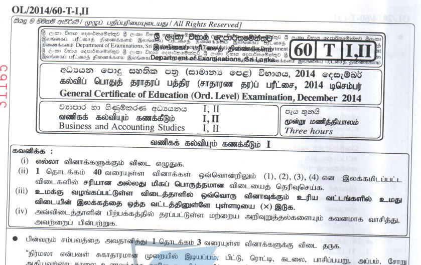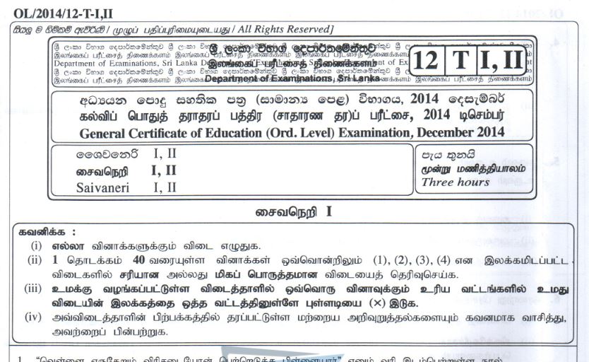 G C E Ordinary Level O L Exam Past Papers Free Download