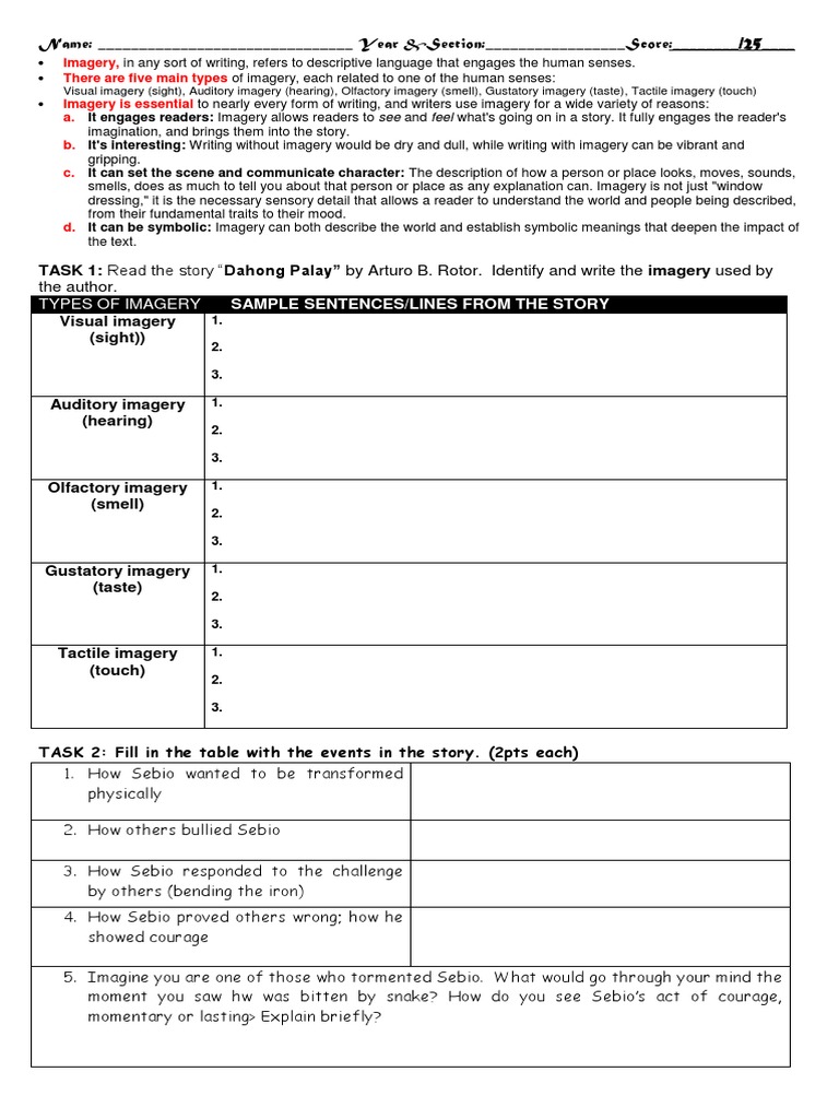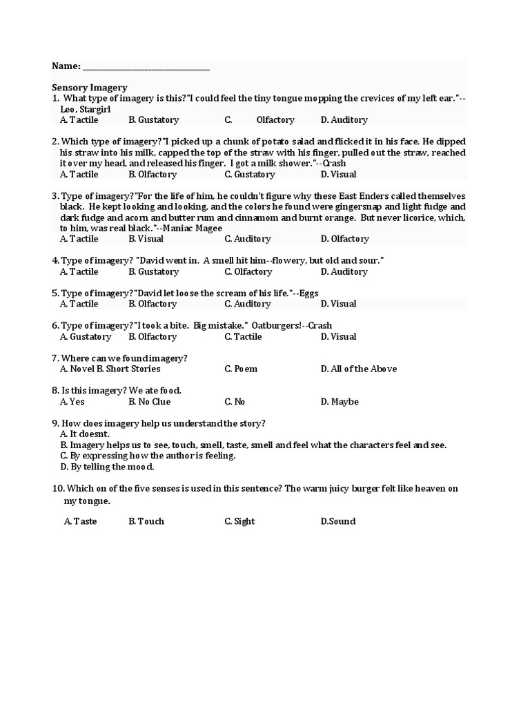 Kinesthetic Imagery Ap English