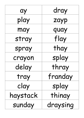 Phase 5 Ay Flashcards Real And Nonsense Words