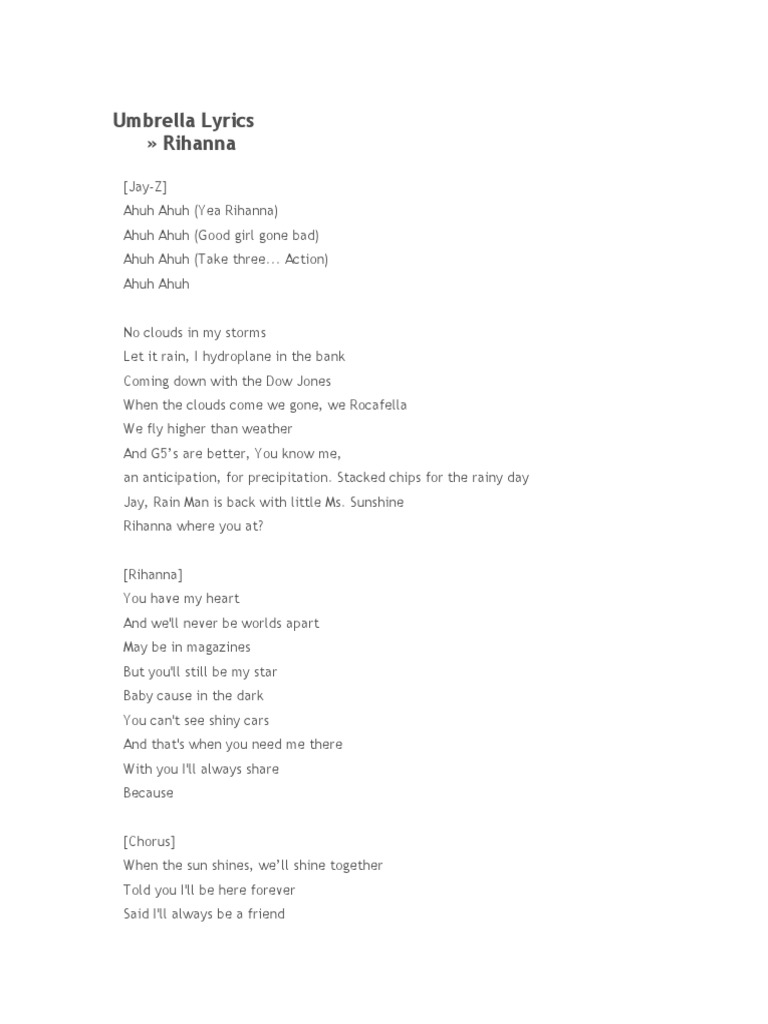 Umbrella Orange Version Ft Jay Z Lyrics Rihanna Song In Images